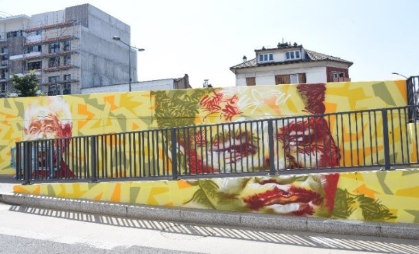 Cette fresque monumentale de plus de 1 000 m² compte parmi les plus grandes d’Europe réalisées sur un ouvrage de voirie. Elle a été réalisé en 2021.
