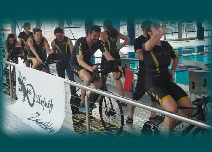 Epreuve ouverte à tous consistant à enchaîner une épreuve de natation puis de vélo sur home-trainer.